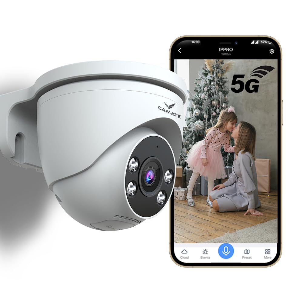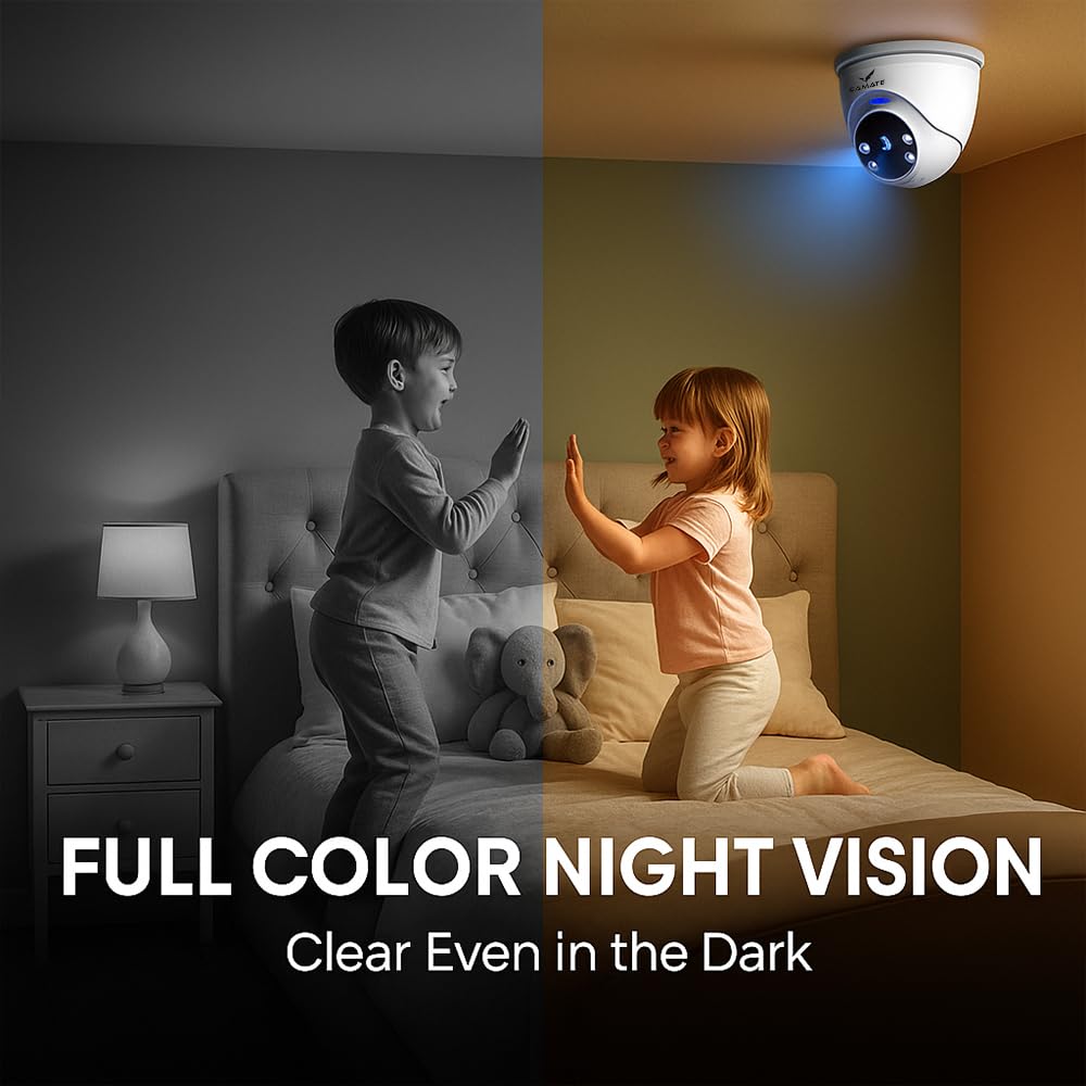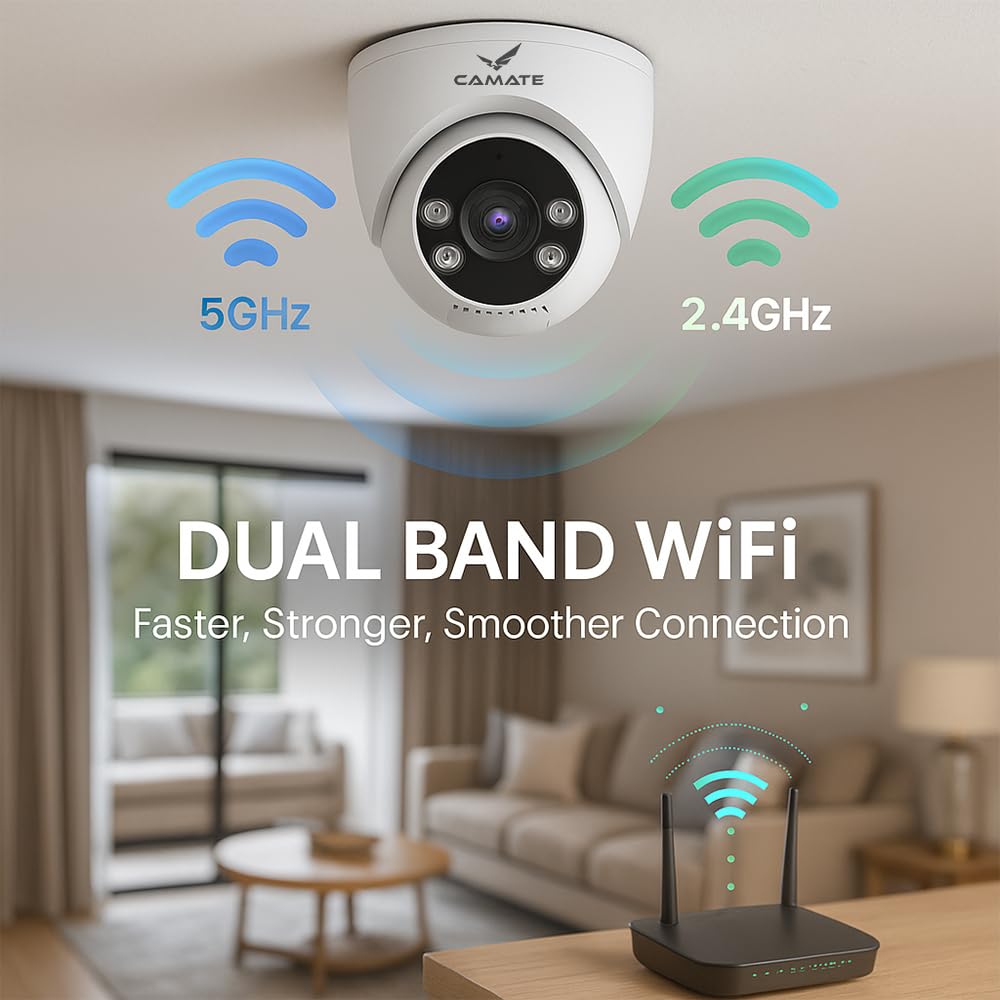 Camate Curve 3MP (5GHz/2.4GHz Dual Band WiFi) Dome CCTV Camera | Wireless Indoor Security Camera with WiFi, Two-Way Audio, Full Color Night Vision, Motion Detection, Supports 256GB SD Card