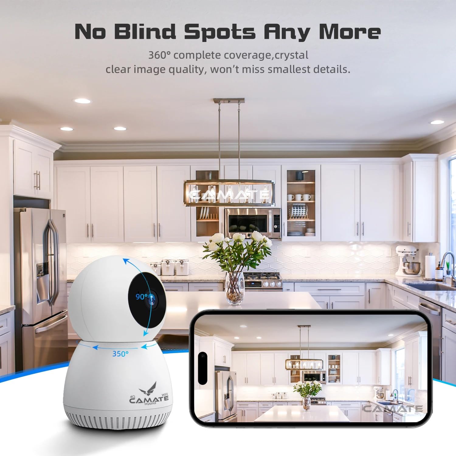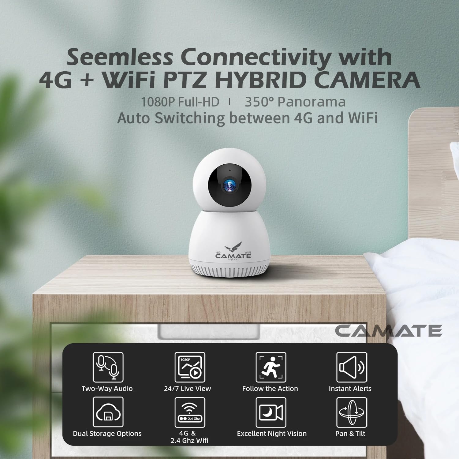Camate Hybrid 4G Sim Based + Wi Fi Based 3MP Smart Indoor CCTV Camera | Baby Monitoring Surveillance | Motion Detection & Tracking | Night Vision | 2-Way Audio | Support 256GB Micro SD Card