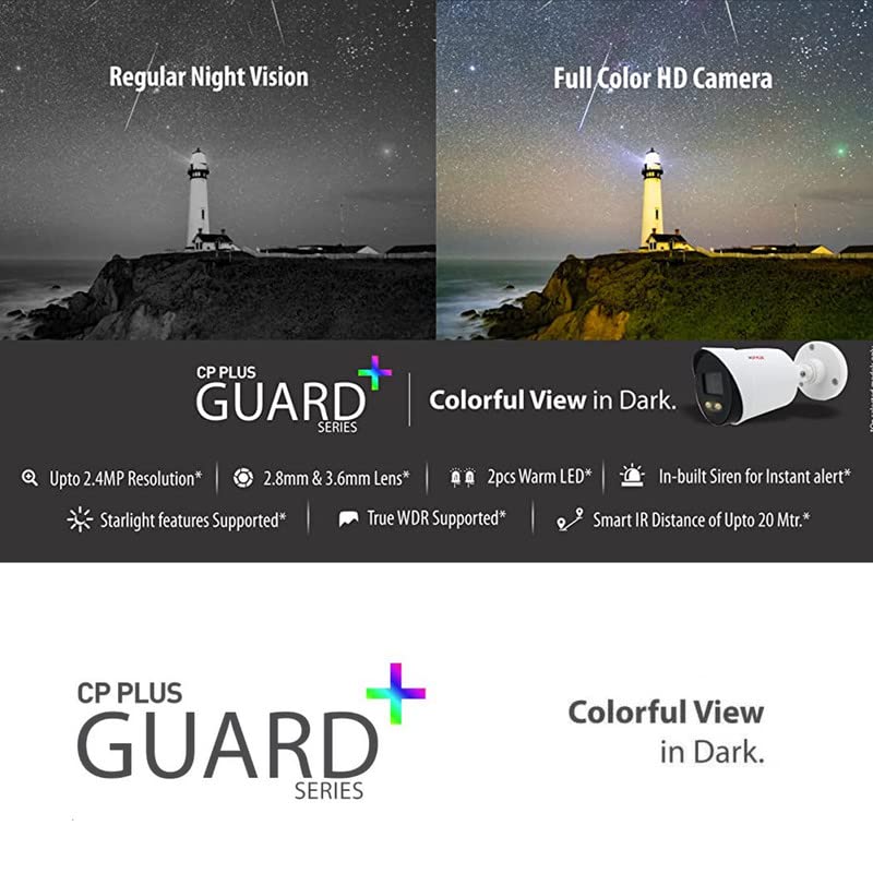 Clocite CP Plus 4CH DVR + 5MP (Guard+) Audio Recording 4 Dome Cameras with 24/7 (Day/Night Color Vision) + 1TB HDD + Copper Cable Roll (1+3) + CLOCITE 4CH SMPS + BNC & DC Full Combo Kit