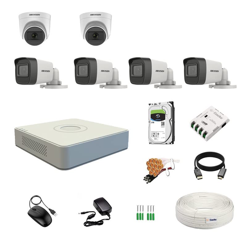 Clocite HIKVISION 8 Channel DVR with 5MP 2 Dome & 4 Bullet Cameras with Audio Recording (Day/Night Vision) + 2TB HDD + Cable Roll (1+3) 8 CH Power Supply + BNC & DC Full Combo Kit