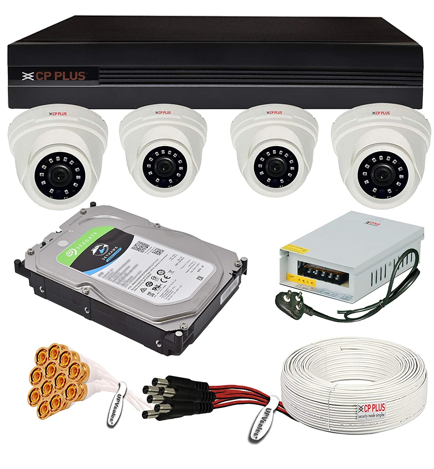CP PLUS Combo Kit with 4 Channel DVR, 2.4MP 4 Dome Cameras, 2TB HDD, Power Supply, 90Mtr Cable, Connectors Full HD Wired CCTV Security Camera Set