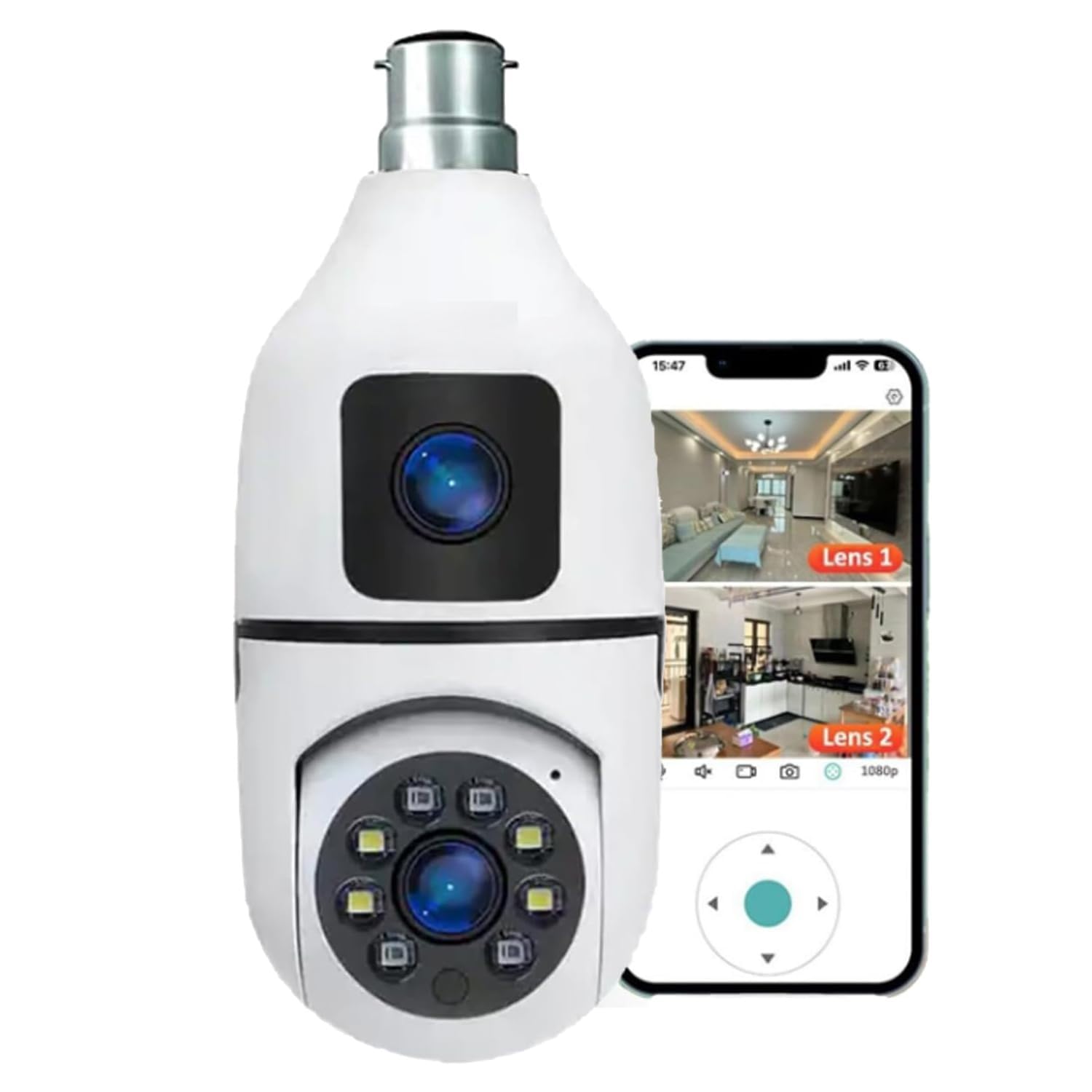 Dual Lens Full HD 3mp AI (Upgraded) CCTV Light Vision Motion Sensor Two-Way Audio Micro SD Card Upto 128GB Monitor Nanny Security Indoor White (Dual Lens Light Camera)
