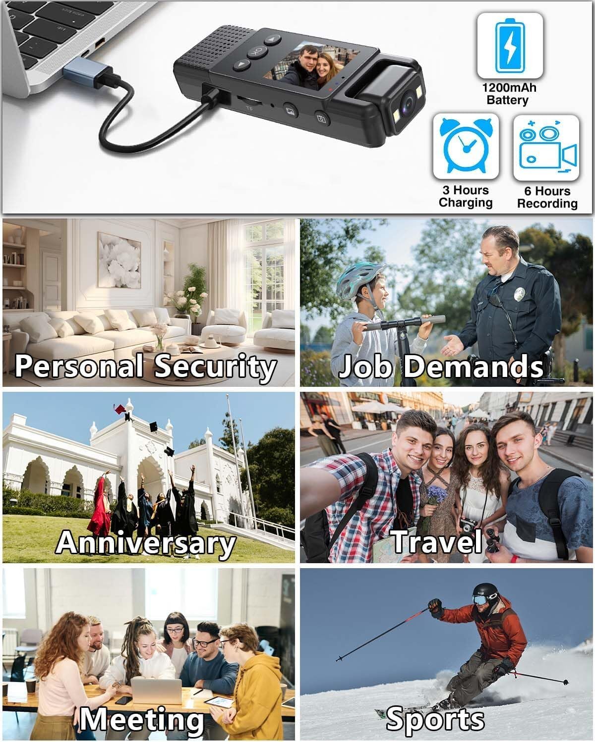 Full HD 1080P WiFi Enforcement Body Cam with 180 Degree Lens Rotate Night Vision Pocket Camera Security Camera (64GB, 1 Channel)