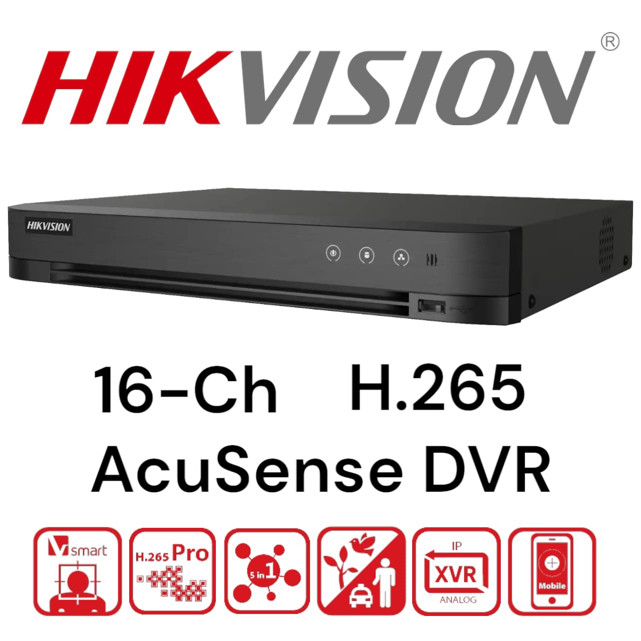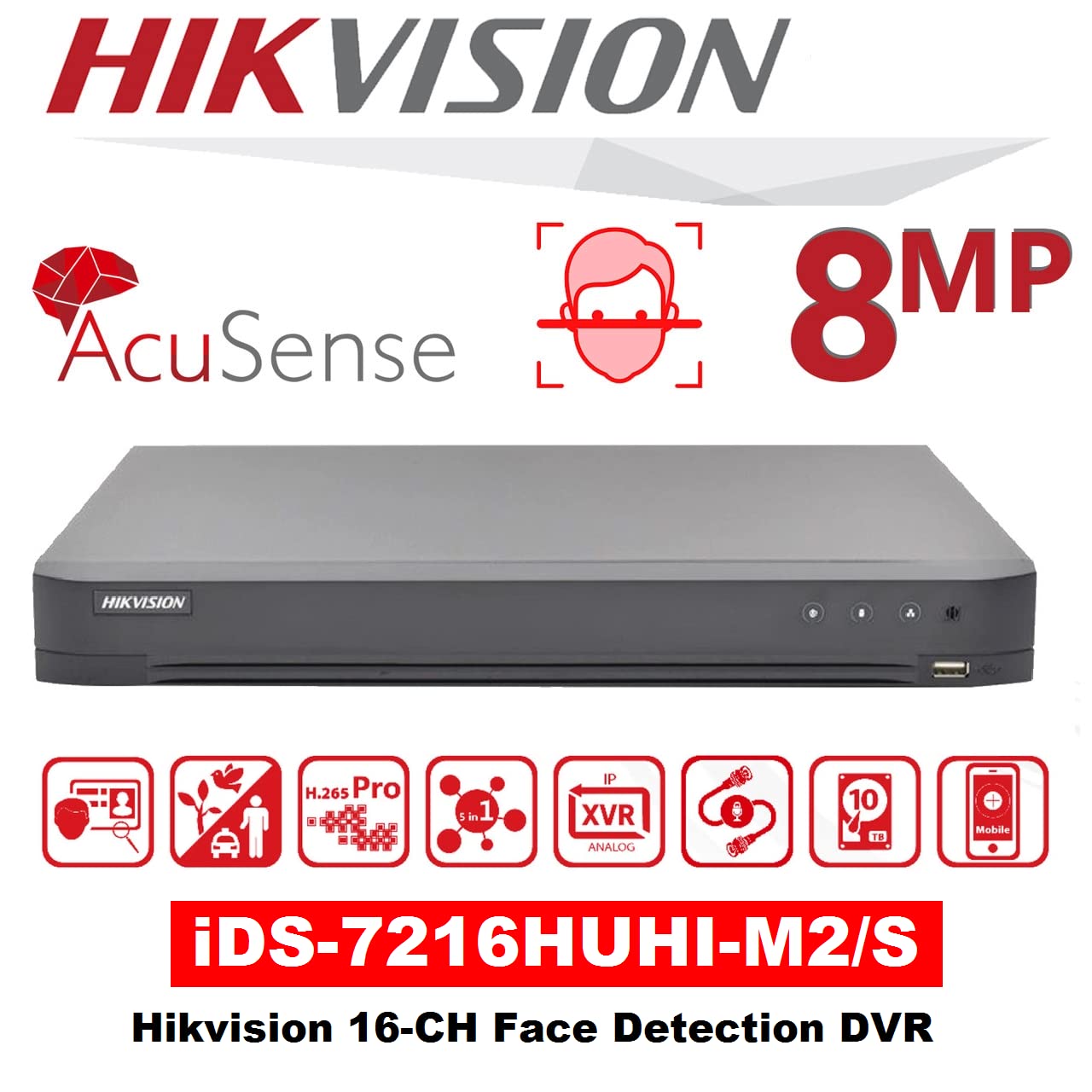 HIKVISION 16 Channel H.265 AcuSense 8 MP 4K DVR [iDS-7216HUHI-M2/S] for CCTV Cameras DVR Black