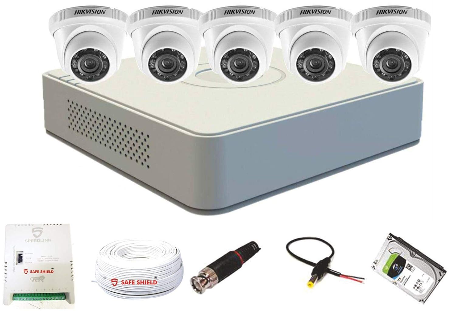 HIKVISION 8 Channel DVR & 5 Dome LED CCTV Camera with Speedlink Cable & Power Supply Surveillance kit (White)