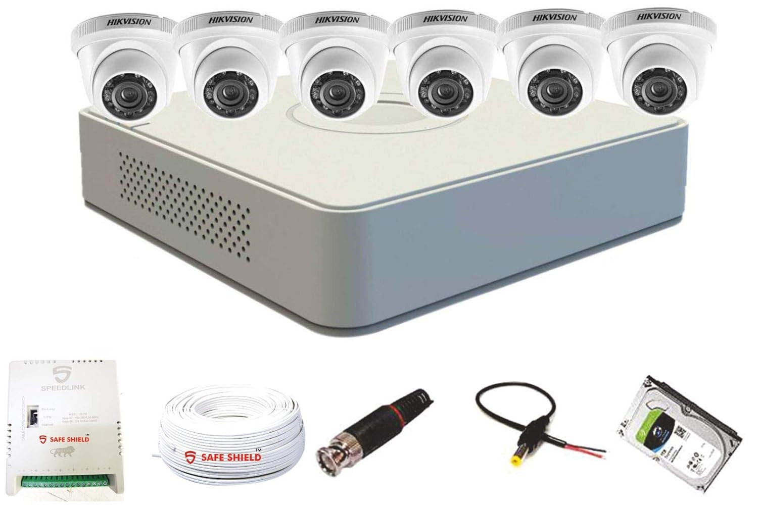 HIKVISION 8 Channel DVR & 6 Dome LED CCTV Camera with Speedlink Cable & Power Supply Surveillance kit (White)