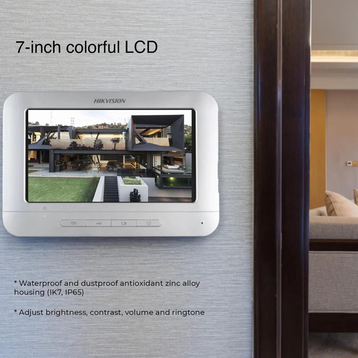 HIKVISION DS-KIS205T Wired Video Door Phone Kit | 7-Inch Indoor Monitor | HD Outdoor Doorbell Camera | Built-in Mic & Speaker | Noise Reduction | Night Vision | One-Touch Unlock Function