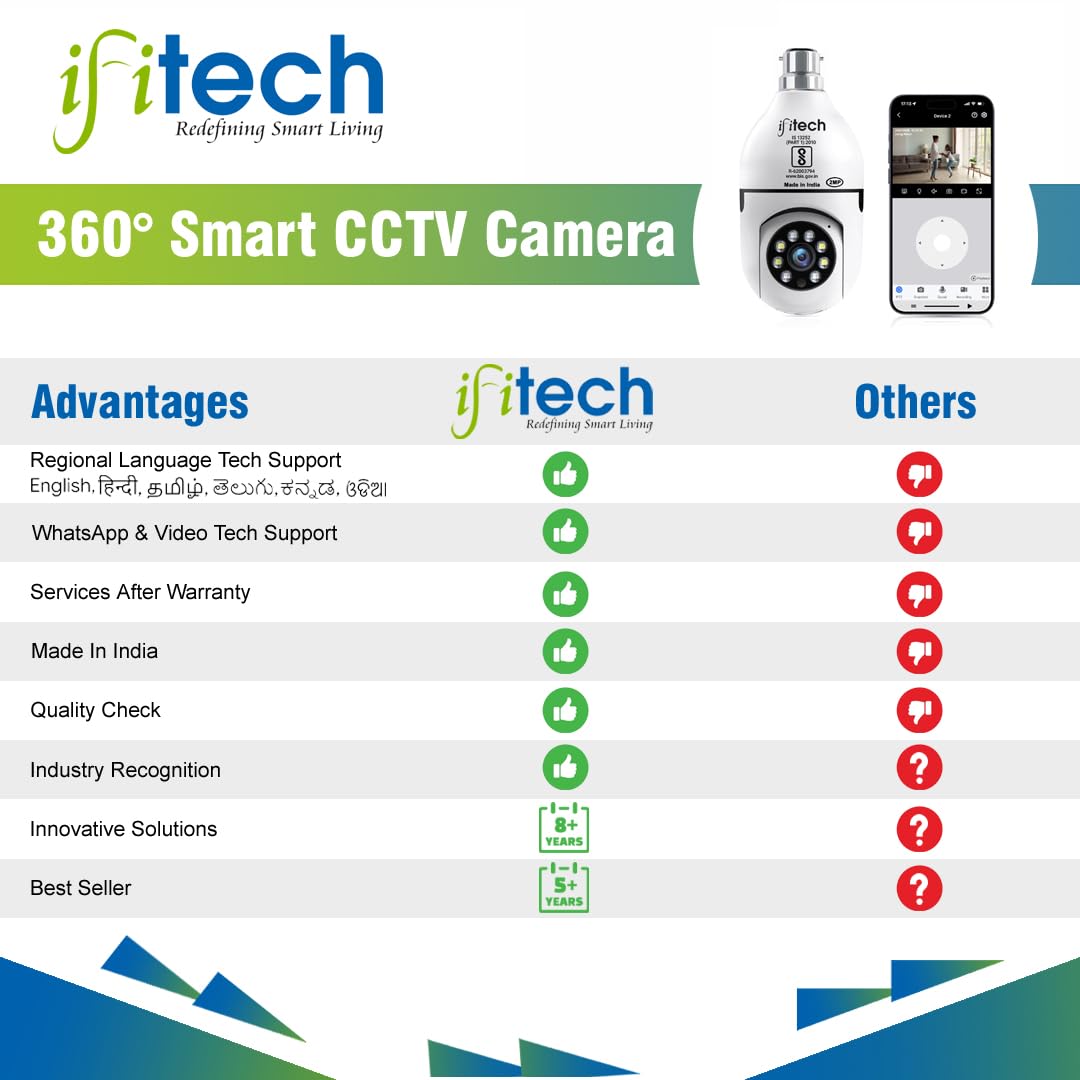 IFITech 1080p HD Smart Wi-Fi CCTV Home Security Camera | Indoor 360° Smart CCTV Camera | Bulb Camera | 256GB SD Card Support (Not Included) | Perfect for Home, Office Monitoring