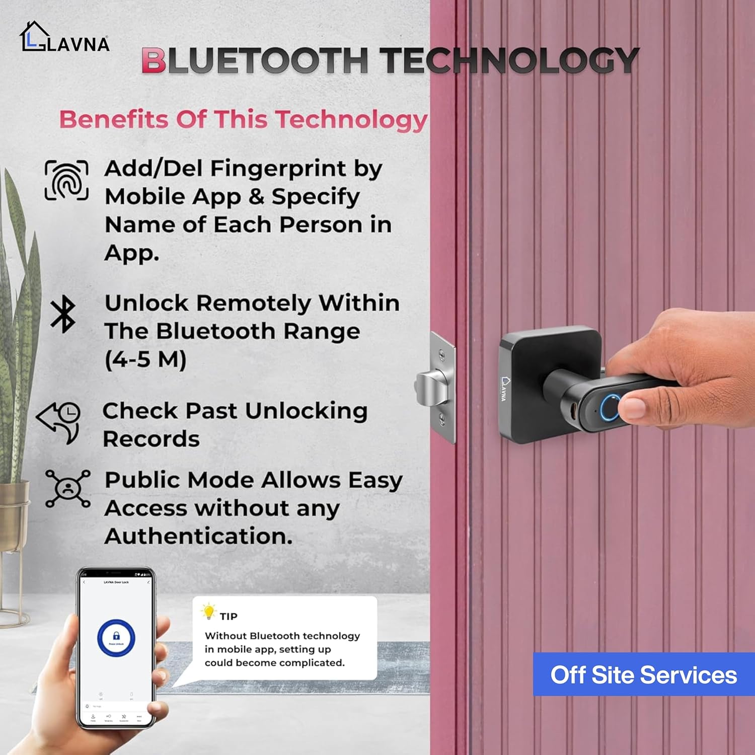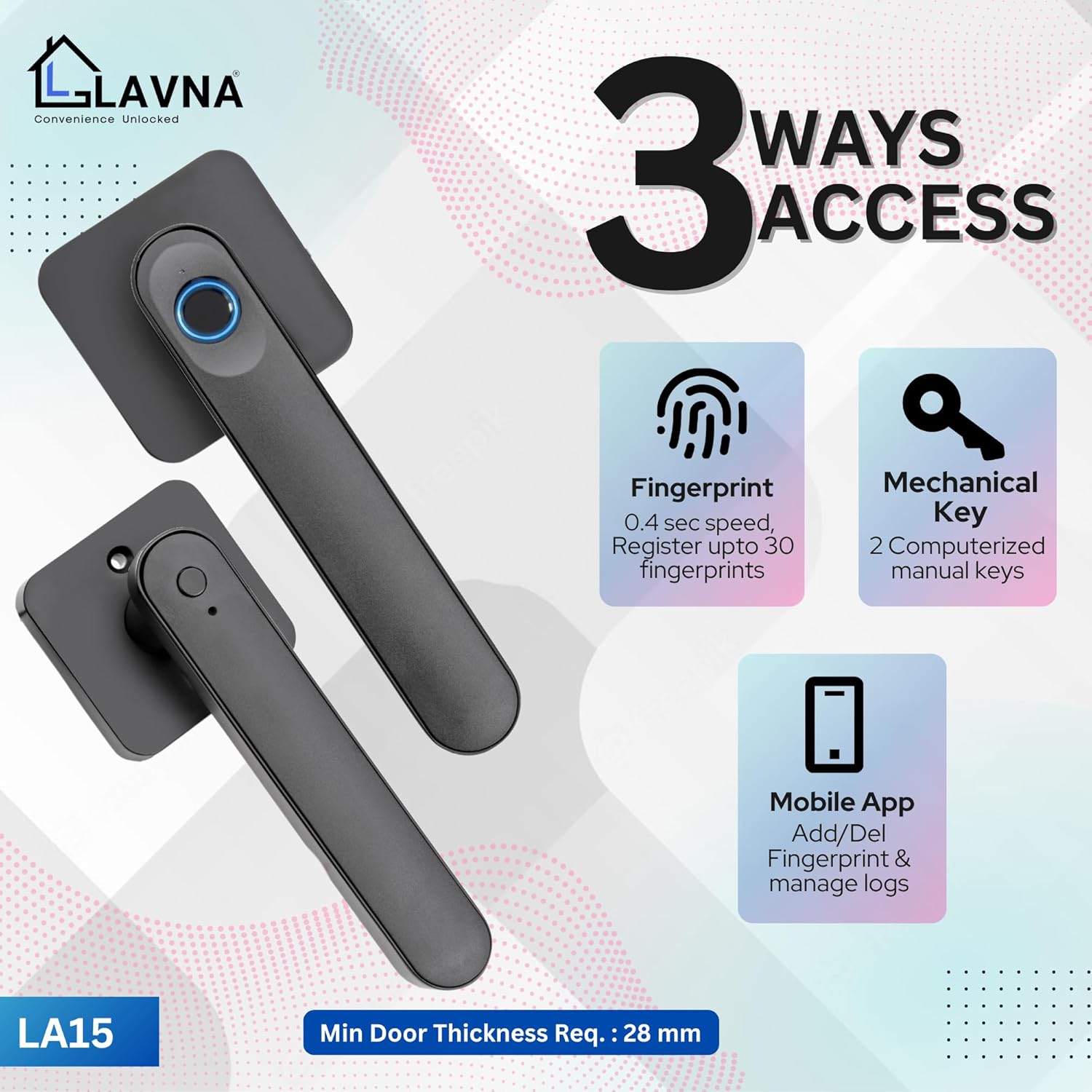 LAVNA Smart Door Lock | 3 Way Unlock | Fingerprint, Mobile app, Key Access Suitable for 28 mm to 55mm Wooden Door fit with Right N Left Door Handle (Digital) (LA15)