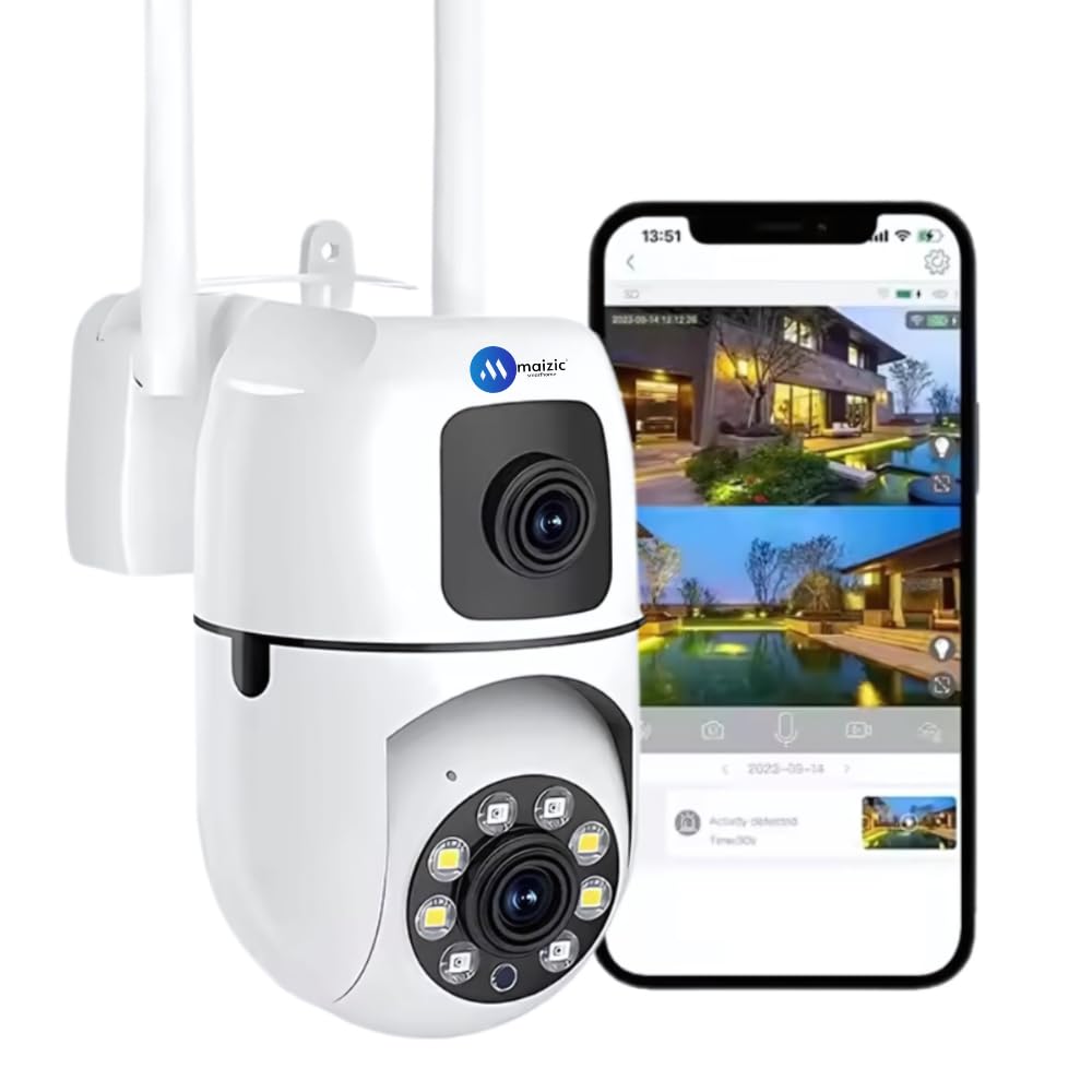 Maizic Smarthome Supercam TwinView 5+5MP FHD Dual Lens Wi-Fi Outdoor CCTV Camera | Dual Screen | Color Night Vision | Motion Detection | Two-Way Talk | IP66 Waterproof (S-Dual Lens (2) Mini PTZ Cam)