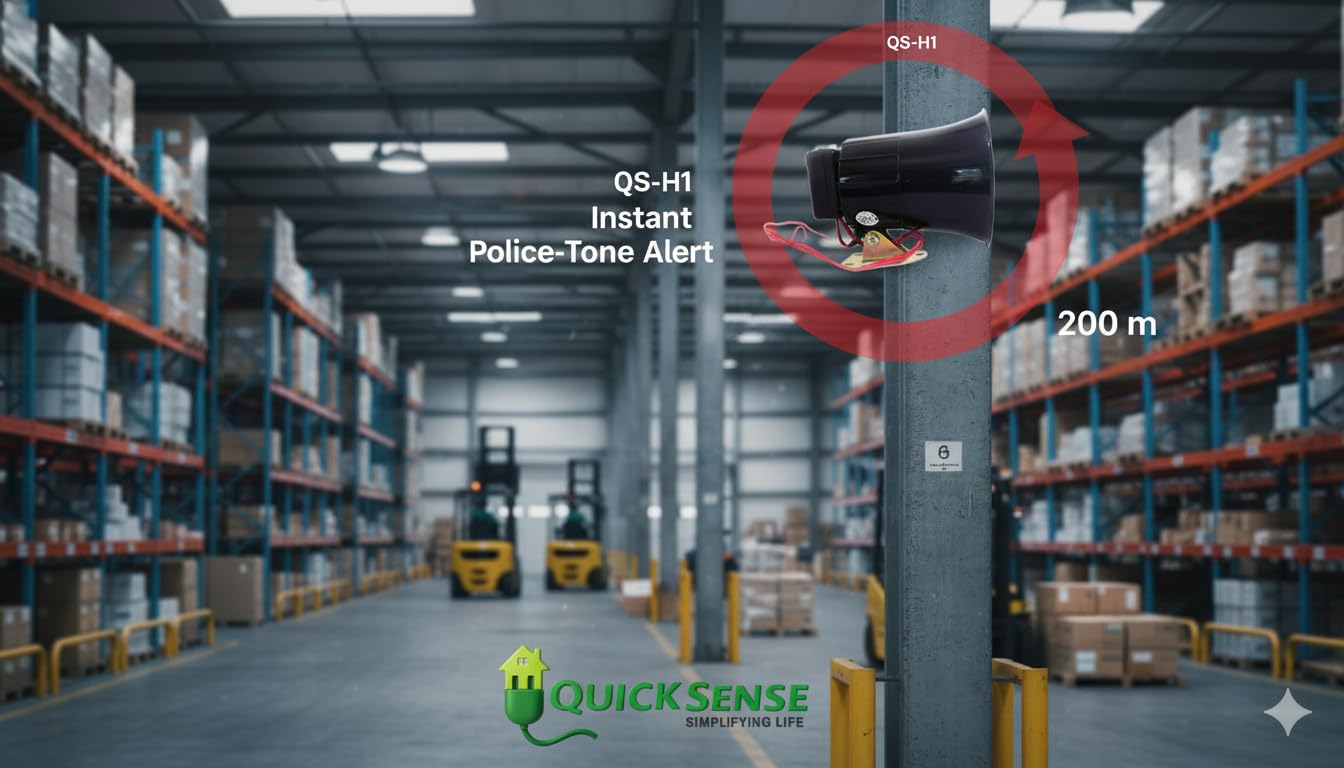 Quick Sense Electronic Siren QS-H1 | 115 dB Standard Alarm | 220V AC | ABS Housing | Adjustable Mount | Industrial & Security Use