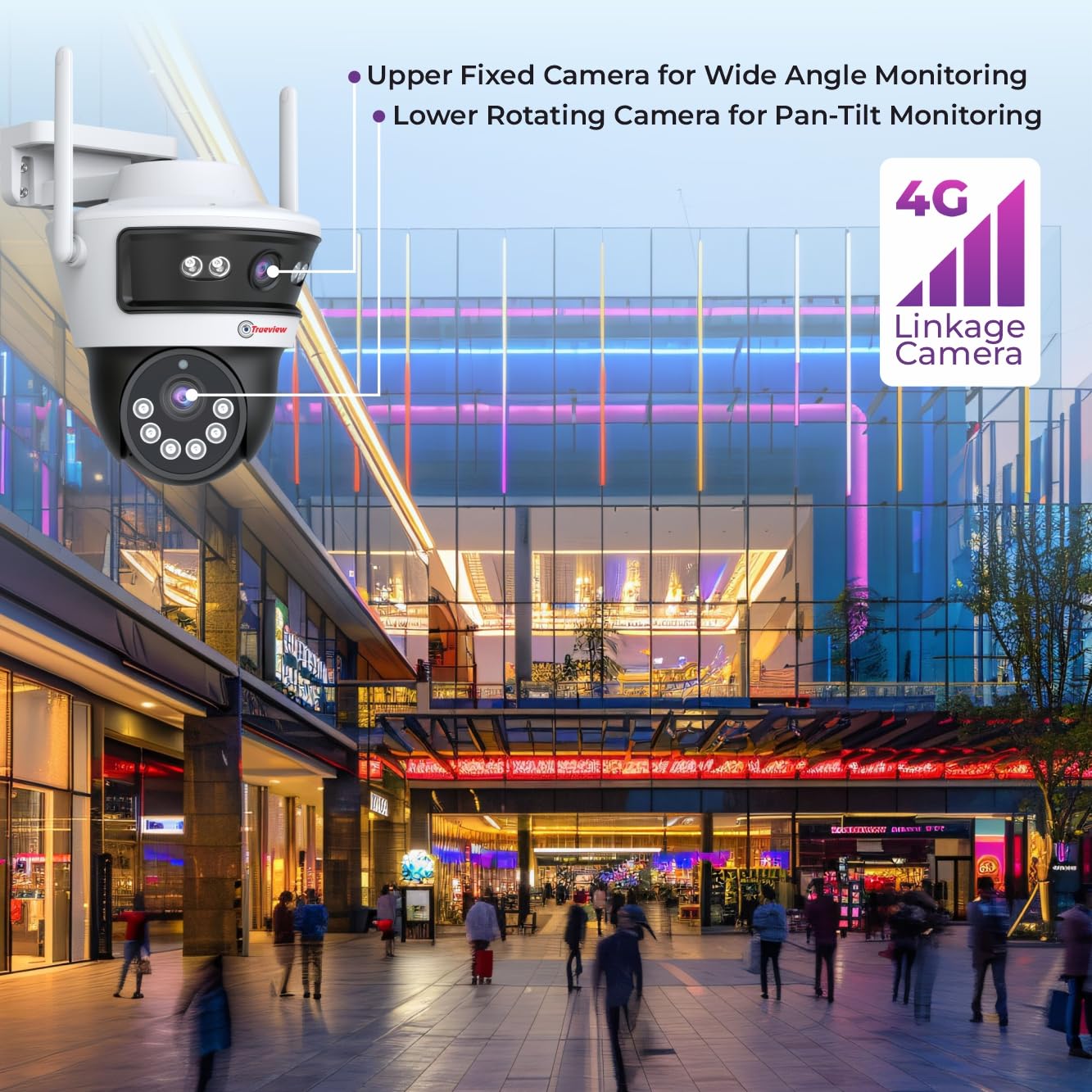 Trueview Smart 4G Linkage 2Mp+2Mp Pan-Tilt Zoom CCTV Camera, Outdoor Indoor Security Camera, Water Proof, 2 Way Talk, Cloud Storage, Motion Detect, Supports SD Card Up to 256 GB, Night Vision