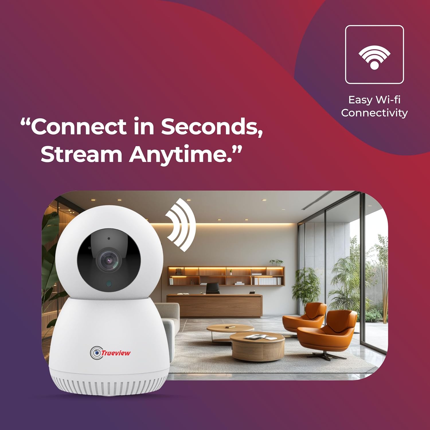 Trueview 3MP Smart CCTV Wi-fi Home Security Camera, 360° View, 2 Way Talk, Cloud Monitor, Detect, Supports SD Card Up to 256 GB, Night Vision, Alexa & Ok Google