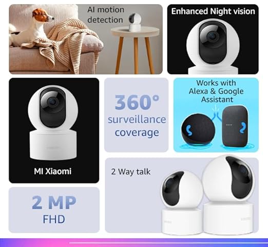 MI XIAOMI Wireless Home Security Camera 2i 2022 Edition | Full HD Picture | 360 View | 2MP | AI Powered Motion Detection | Enhanced Night Vision| Talk Back Feature (2 Way Calling), 1080p, White